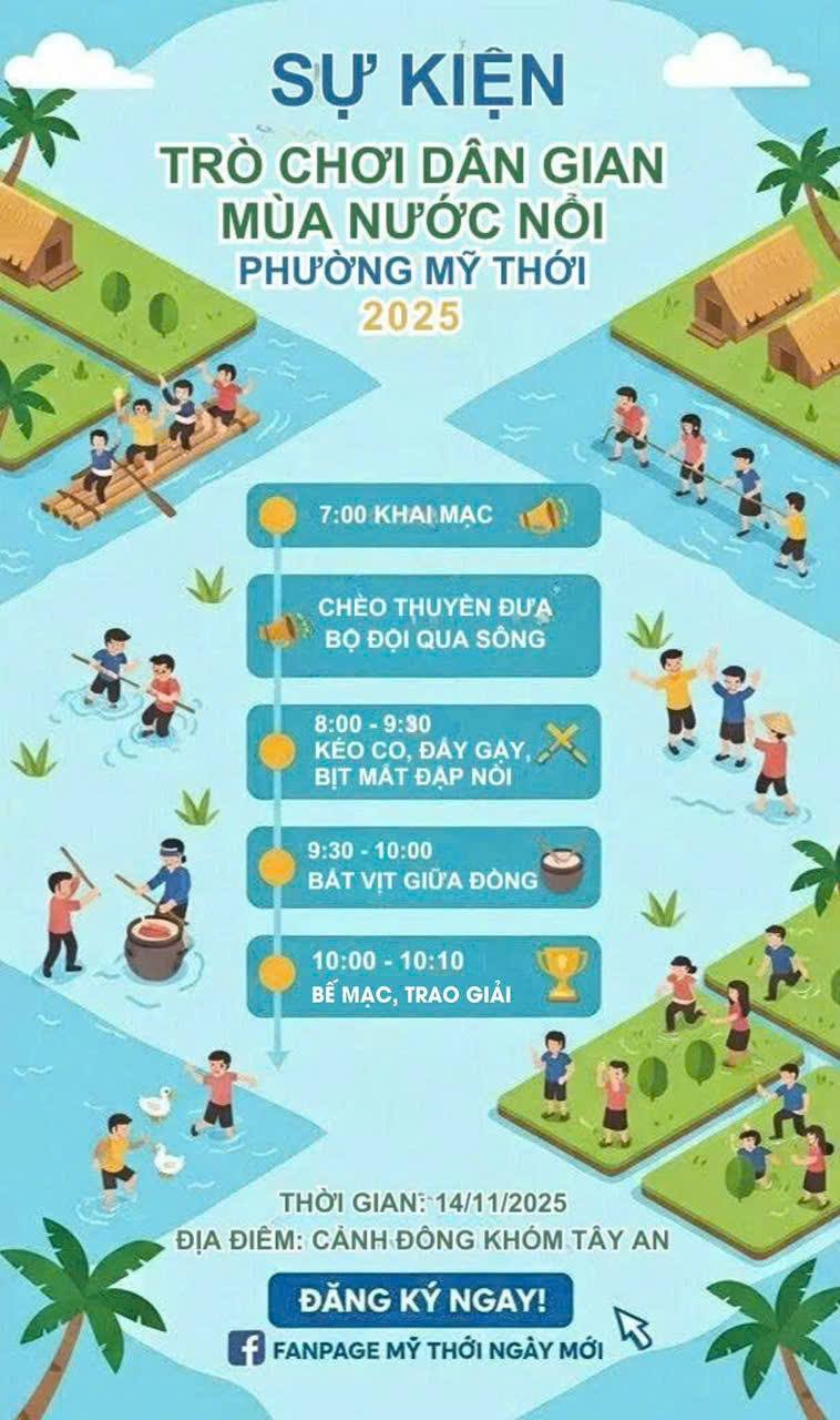 14/11/2025 Sự kiện Trò chơi dân gian mùa nước nổi phường Mỹ Thới.