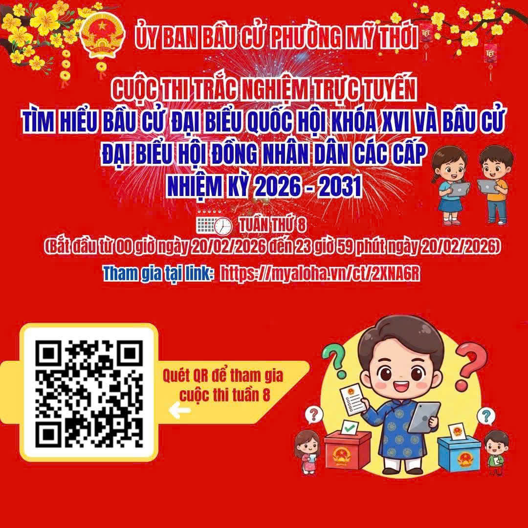 🧧TUẦN THỨ 8️⃣ CUỘC THI TRẮC NGHIỆM TRỰC TUYẾN TÌM HIỂU BẦU CỬ ĐẠI BIỂU QUỐC HỘI KHÓA XVI VÀ BẦU CỬ ĐẠI BIỂU HĐND CÁC CẤP NHIỆM KỲ 2026 – 2031