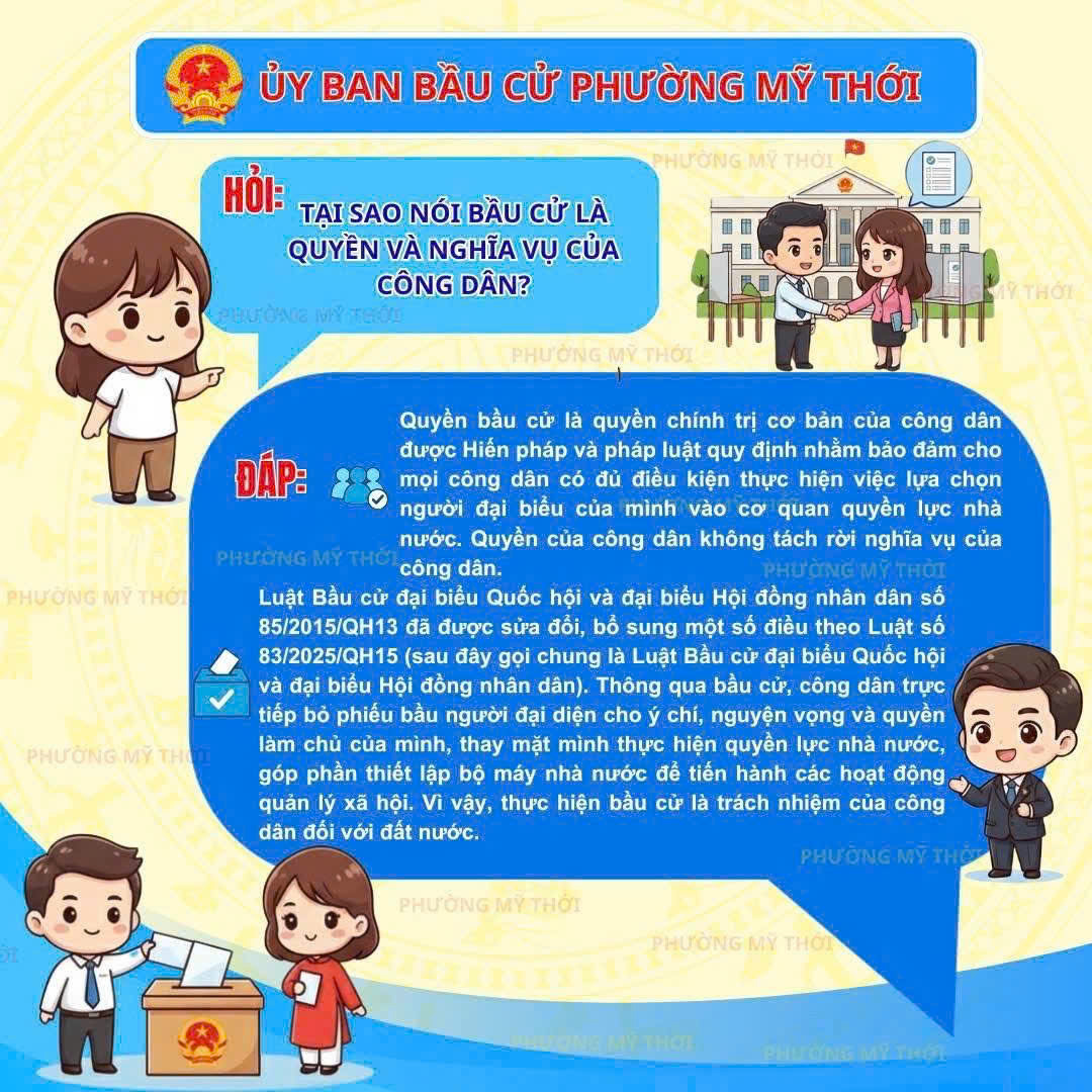 ĐẢNG BỘ, CHÍNH QUYỀN, NHÂN DÂN PHƯỜNG MỸ THỚI NHIỆT LIỆT CHÀO MỪNG NGÀY BẦU CỬ ĐẠI BIỂU QUỐC HỘI KHÓA XVI VÀ VÀ ĐẠI BIỂU HĐND CÁC CẤP NHIỆM KỲ 2026 - 2031