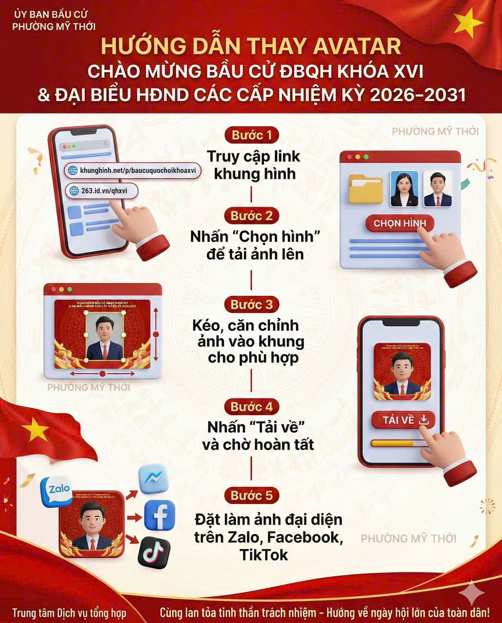 HƯỚNG DẪN THAY AVATAR CHÀO MỪNG BẦU CỬ ĐBQH KHÓA XVI VÀ ĐẠI BIỂU HĐND CÁC CẤP NHIỆM KỲ 2026-2031