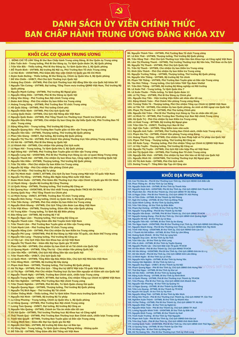 DANH SÁCH UỶ VIÊN BAN CHẤP HÀNH TRUNG ƯƠNG ĐẢNG KHOÁ XIV