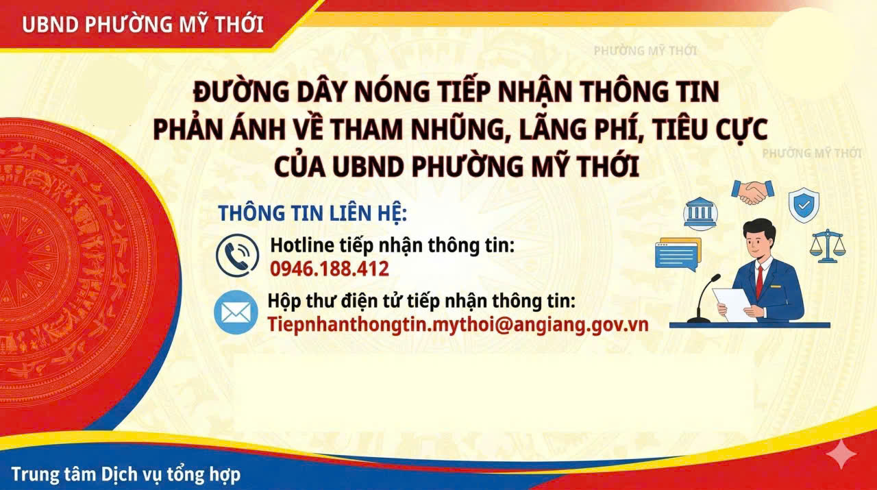 ĐƯỜNG DÂY NÓNG TIẾP NHẬN THÔNG TIN PHẢN ÁNH VỀ THAM NHŨNG, LÃNG PHÍ, TIÊU CỰC CỦA UBND PHƯỜNG MỸ THỚI