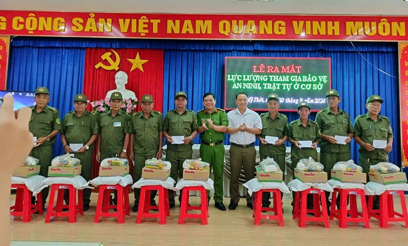 Dịp này, UBND phường Mỹ Thới đã trao tặng 30 phần quà cho các thành viên trong lực lượng tham gia bảo vệ an ninh trật tự ở cơ sở, mỗi phần gồm gạo, mì, các nhu yếu phẩm và tiền mặt. Qua đó, góp phần động viên, khích lệ tinh thần các đồng chí tham gia lực lượng đảm bảo an ninh trật tự cơ sở hoàn thành tốt nhiệm vụ đảm bảo an ninh trật tự, phục vụ nhiệm vụ phát triển kinh tế - xã hội và giữ vững cuộc sống bình yên, hạnh phúc cho Nhân dân./.
