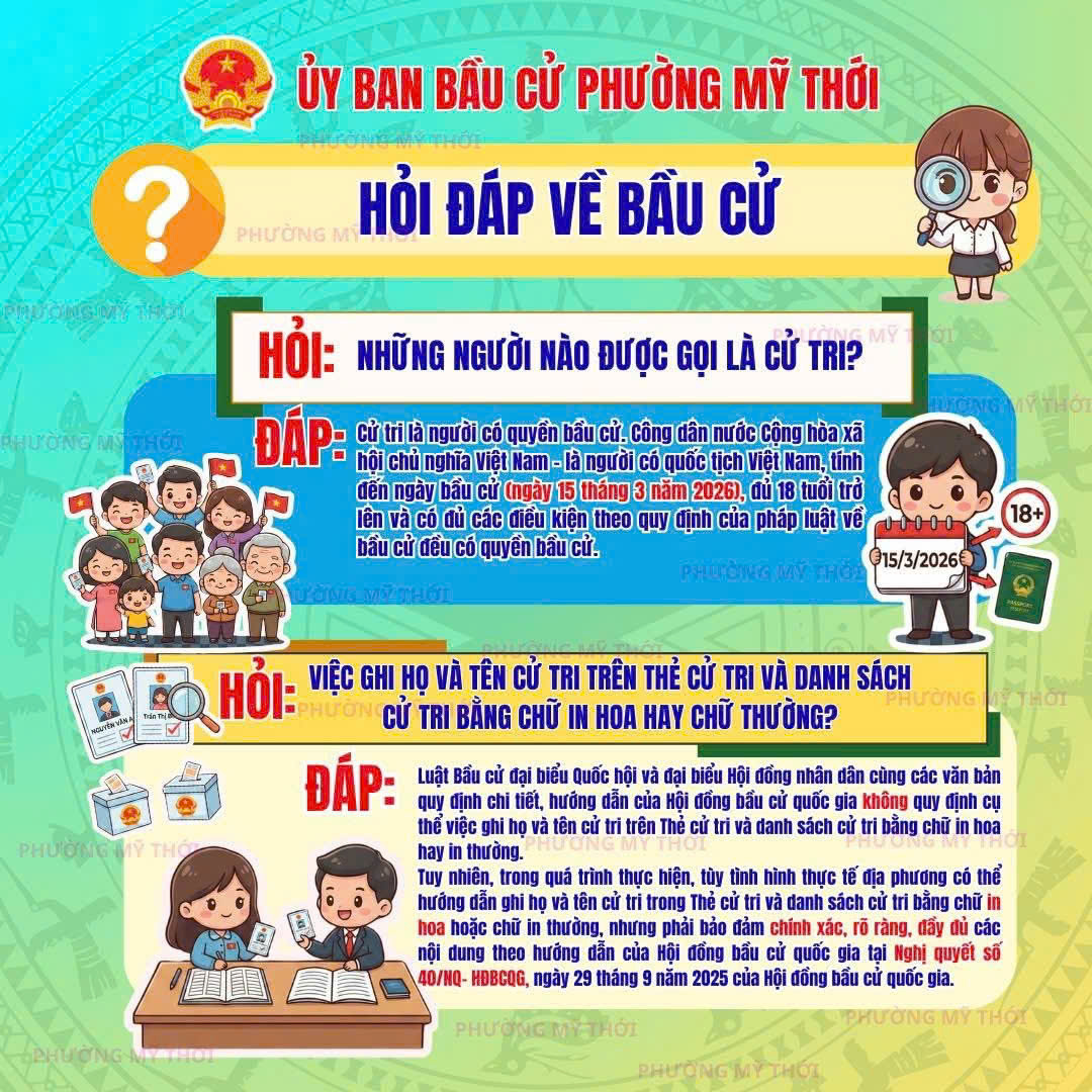 MỸ THỚI - CHUYÊN MỤC HỎI ĐÁP BẦU CỬ ĐẠI BIỂU QUỐC HỘI KHÓA XVI VÀ ĐẠI BIỂU HĐND CÁC CẤP NHIỆM KỲ 2026 - 2031