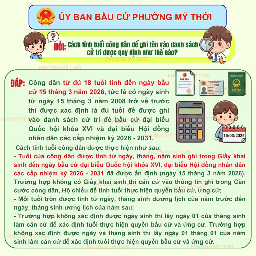 MỸ THỚI - CHUYÊN MỤC HỎI ĐÁP BẦU CỬ ĐẠI BIỂU QUỐC HỘI KHÓA XVI VÀ ĐẠI BIỂU HĐND CÁC CẤP NHIỆM KỲ 2026 - 2031