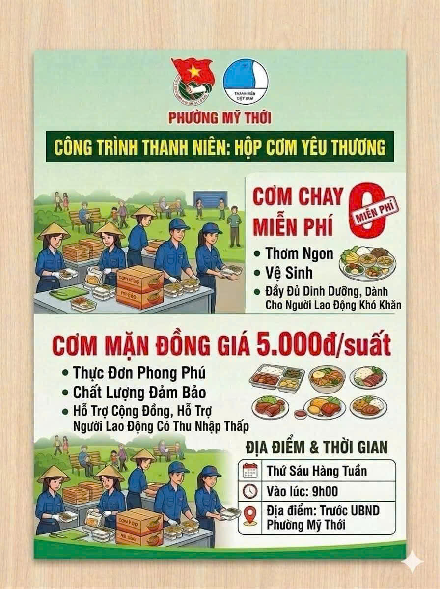 🍀 Trong thời gian tới, Đoàn phường Mỹ Thới sẽ tiếp tục duy trì mô hình, đồng thời kêu gọi sự chung tay của các mạnh thường quân, tổ chức, cá nhân để chương trình ngày càng phát triển, mang đến nhiều hơn nữa những “suất ăn yêu thương”, góp phần xây dựng địa phương ngày càng văn minh, nghĩa tình.