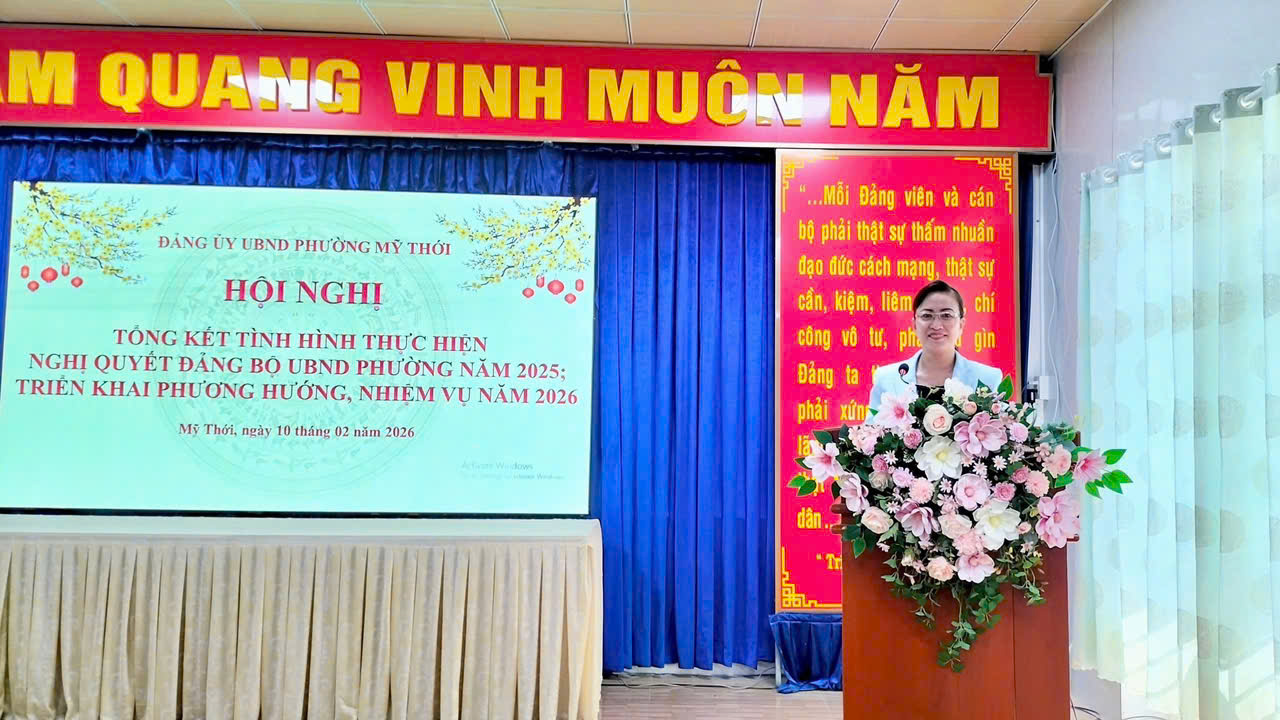 Sáng ngày 10/02, Đảng ủy UBND phường Mỹ Thới, tỉnh An Giang tổ chức Hội nghị tổng kết tình hình thực hiện Nghị quyết năm 2025 và triển khai phương hướng, nhiệm vụ năm 2026. Đồng chí Vương Mai Trinh, Phó Bí thư Đảng ủy, Bí thư Đảng ủy UBND, Chủ tịch UBND phường chủ trì hội nghị. Cùng tham dự hội nghị có: Đồng chí Huỳnh Thị Diễm Châu, Phó Bí thư Thường trực Đảng ủy phường. Đồng chí Phạm Thành Nhơn, UVBTV, Phó Bí thư Đảng ủy UBND, Phó Chủ tịch UBND phường Mỹ Thới, cùng chi bộ thuộc Đảng ủy UBND phường.