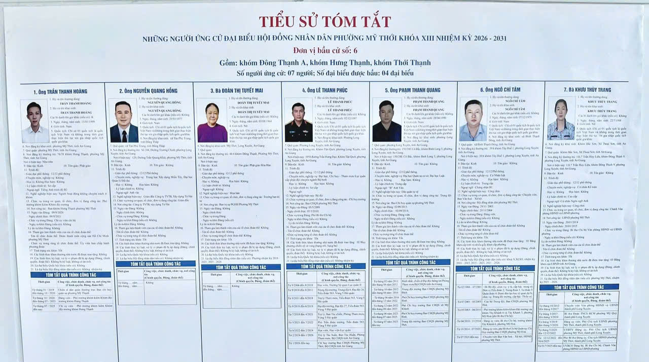 Theo đó, toàn phường hiện có 29 khu vực bỏ phiếu. Tại mỗi khu vực, các bảng niêm yết danh sách cử tri và danh sách người ứng cử đã được bố trí đầy đủ, đặt tại những vị trí thuận tiện, dễ quan sát như trụ sở khóm và các điểm bỏ phiếu, bảo đảm để Nhân dân thuận tiện theo dõi, giám sát và thực hiện quyền công dân.