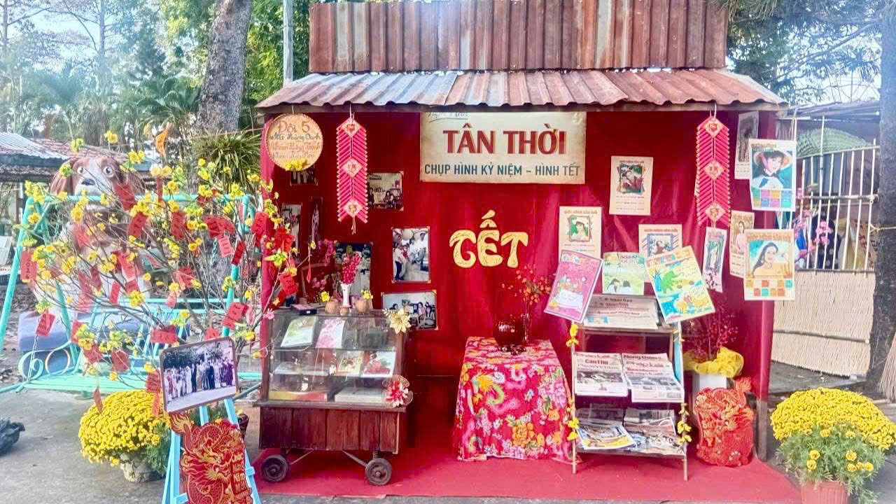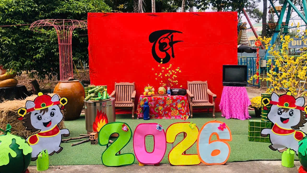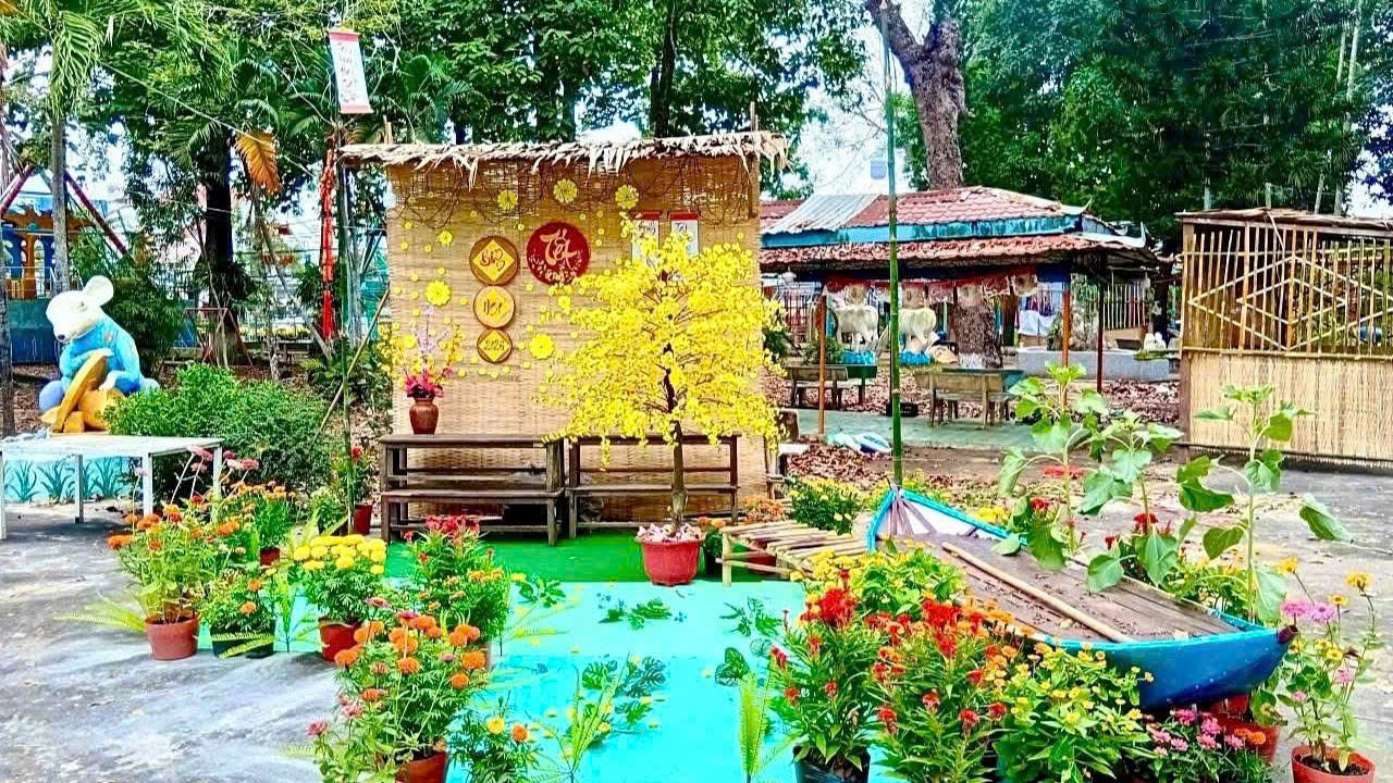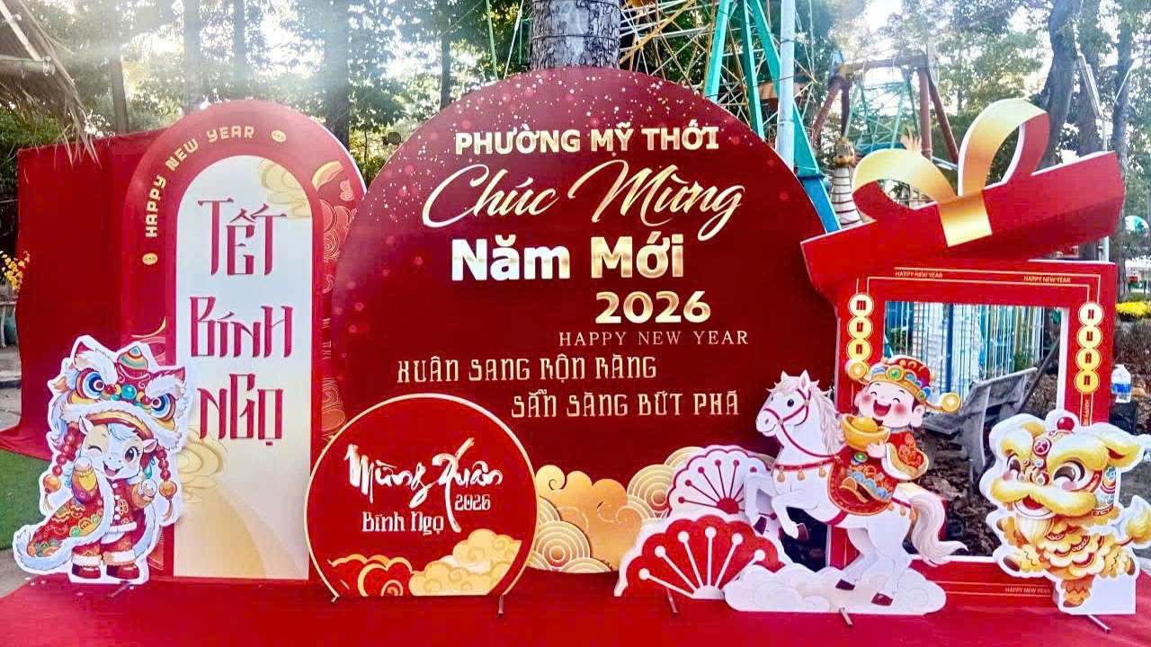📸 Theo đó, UBND phường Mỹ Thới đã tổ chức điểm tham quan, check - in miễn phí tại Công viên Mỹ Thới với nhiều bức tranh ngày Tết làng quê xưa đậm đà bản sắc dân tộc như: