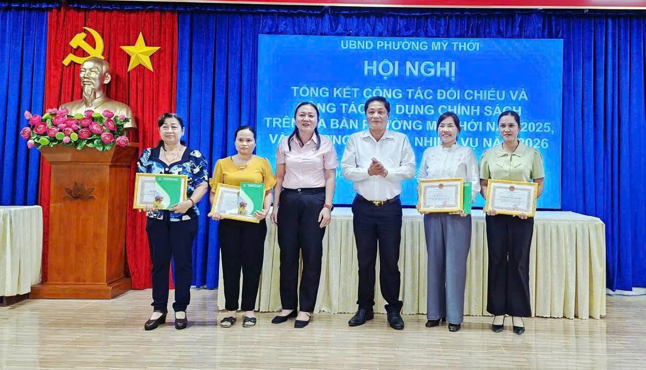 Dịp này, UBND phường Mỹ Thới và Ngân hàng Chính sách xã hội Long Xuyên đã tặng giấy khen cho 04 cá nhân có thành tích xuất sắc trong việc thực hiện công tác tín dụng chính sách trên địa bàn phường năm 2025./.