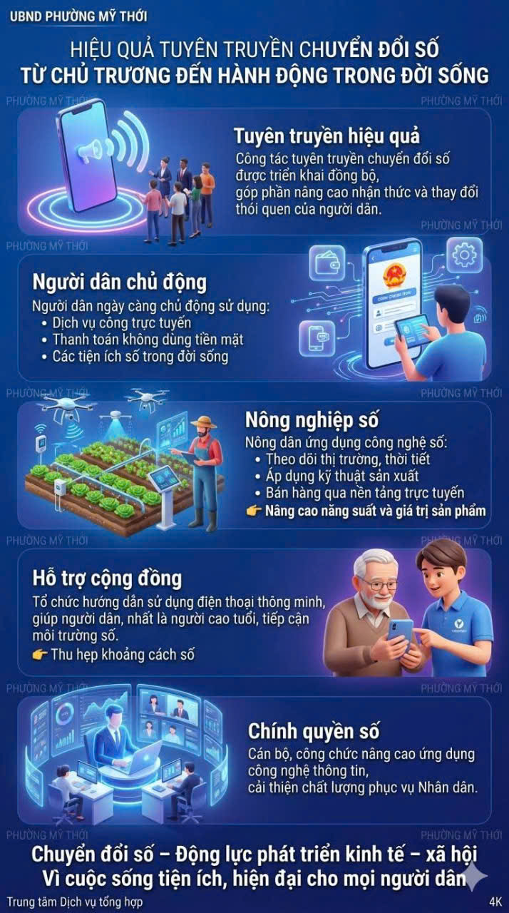 PHƯỜNG MỸ THỚI: HIỆU QUẢ TUYÊN TRUYỀN CHUYỂN ĐỔI SỐ - TỪ CHỦ TRƯƠNG ĐẾN HÀNH ĐỘNG TRONG ĐỜI SỐNG