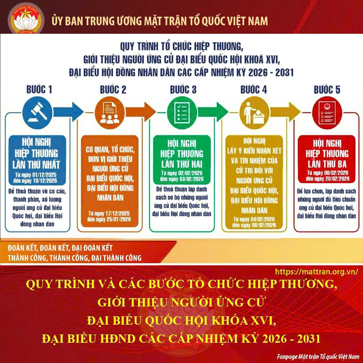 QUY TRÌNH VÀ CÁC BƯỚC TỔ CHỨC HIỆP THƯƠNG, GIỚI THIỆU NGƯỜI ỨNG CỬ ĐẠI BIỂU QUỐC HỘI KHÓA XVI, ĐẠI BIỂU HĐND CÁC CẤP NHIỆM KỲ 2026 - 2031