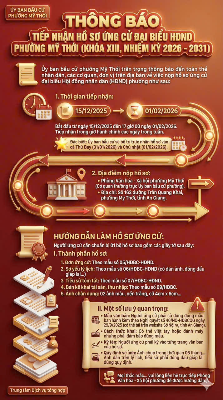 THÔNG BÁO TIẾP NHẬN HỒ SƠ ỨNG CỬ ĐẠI BIỂU HĐND PHƯỜNG MỸ THỚI (KHÓA XIII, NHIỆM KỲ 2026 - 2031)