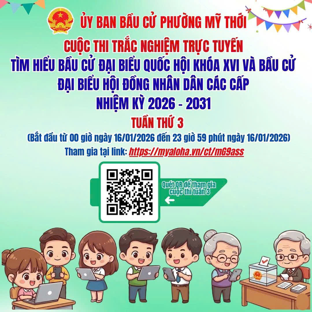 TUẦN THỨ 3 CUỘC THI TRẮC NGHIỆM TRỰC TUYẾN TÌM HIỂU BẦU CỬ ĐẠI BIỂU QUỐC HỘI KHÓA XVI VÀ BẦU CỬ ĐẠI BIỂU HĐND CÁC CẤP NHIỆM KỲ 2026 – 2031