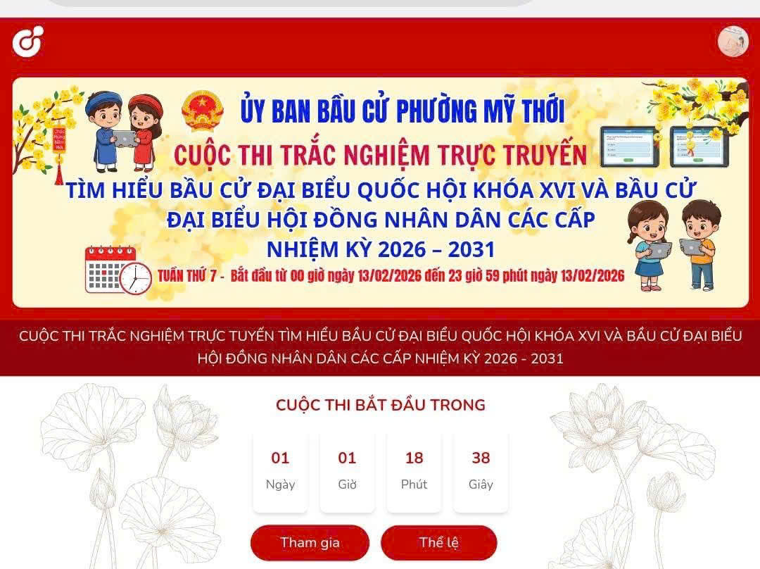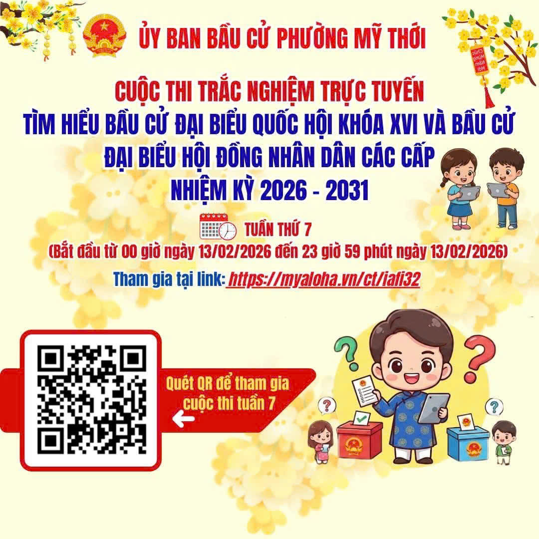 TUẦN THỨ 7️⃣ CUỘC THI TRẮC NGHIỆM TRỰC TUYẾN TÌM HIỂU BẦU CỬ ĐẠI BIỂU QUỐC HỘI KHÓA XVI VÀ BẦU CỬ ĐẠI BIỂU HĐND CÁC CẤP NHIỆM KỲ 2026 – 2031