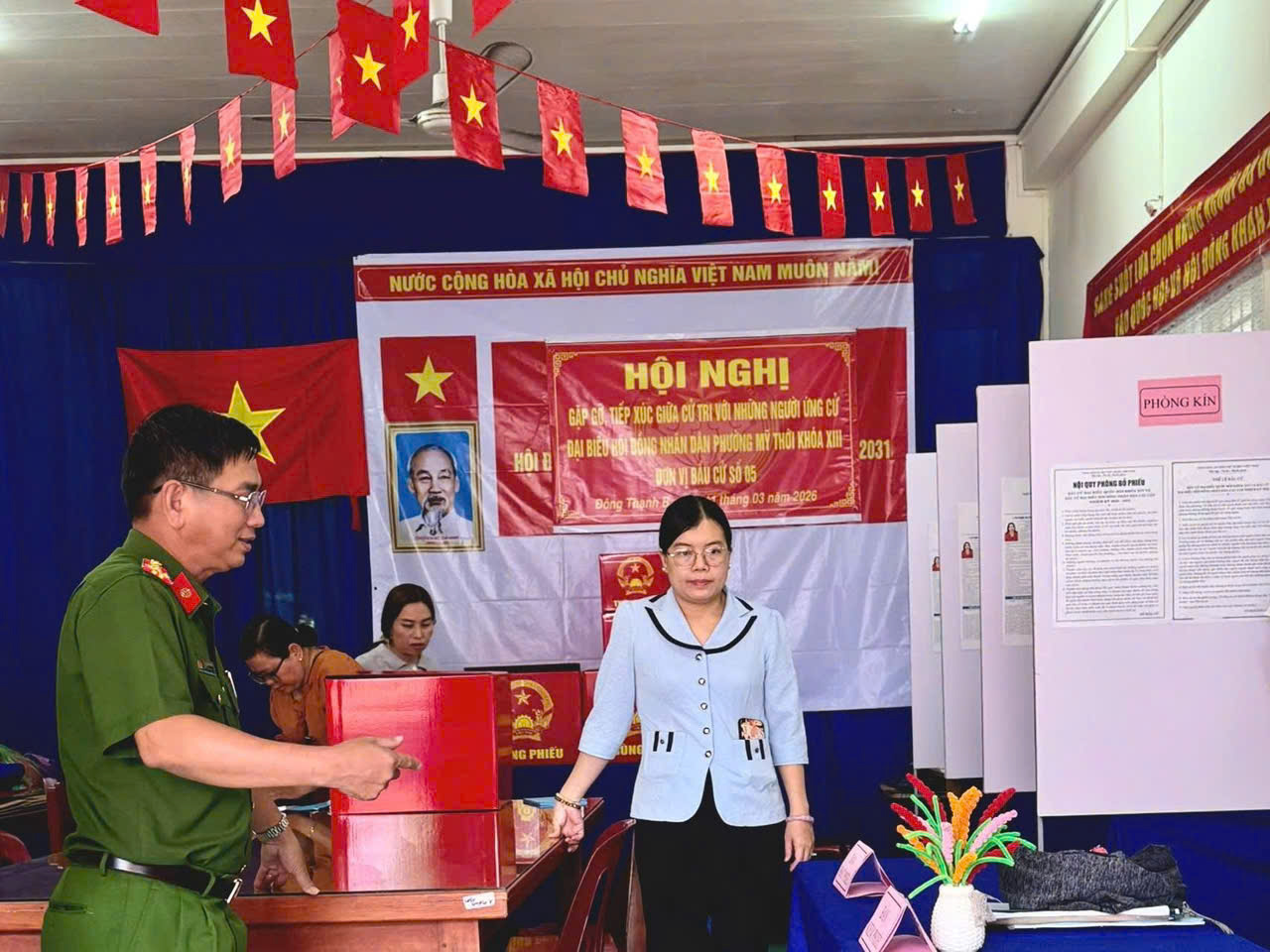 Nhằm chuẩn bị chu đáo cho cuộc bầu cử đại biểu Quốc hội khóa XVI và đại biểu Hội đồng nhân dân các cấp nhiệm kỳ 2026 – 2031. Sáng ngày 13/3/2026 Phó Giám đốc Công an tỉnh Trần Văn Cung kiểm tra công tác đảm bảo an ninh trật tự phục vụ công tác bầu cử trên địa bàn phường Mỹ Thới. Đồng thời trước đó, chiều ngày12/3/2026 Ban Thường vụ Đảng ủy phường Mỹ Thới cũng đã thành lập các đoàn đến kiểm tra công tác chuẩn bị tại các khu vực bỏ phiếu trên địa bàn phường.