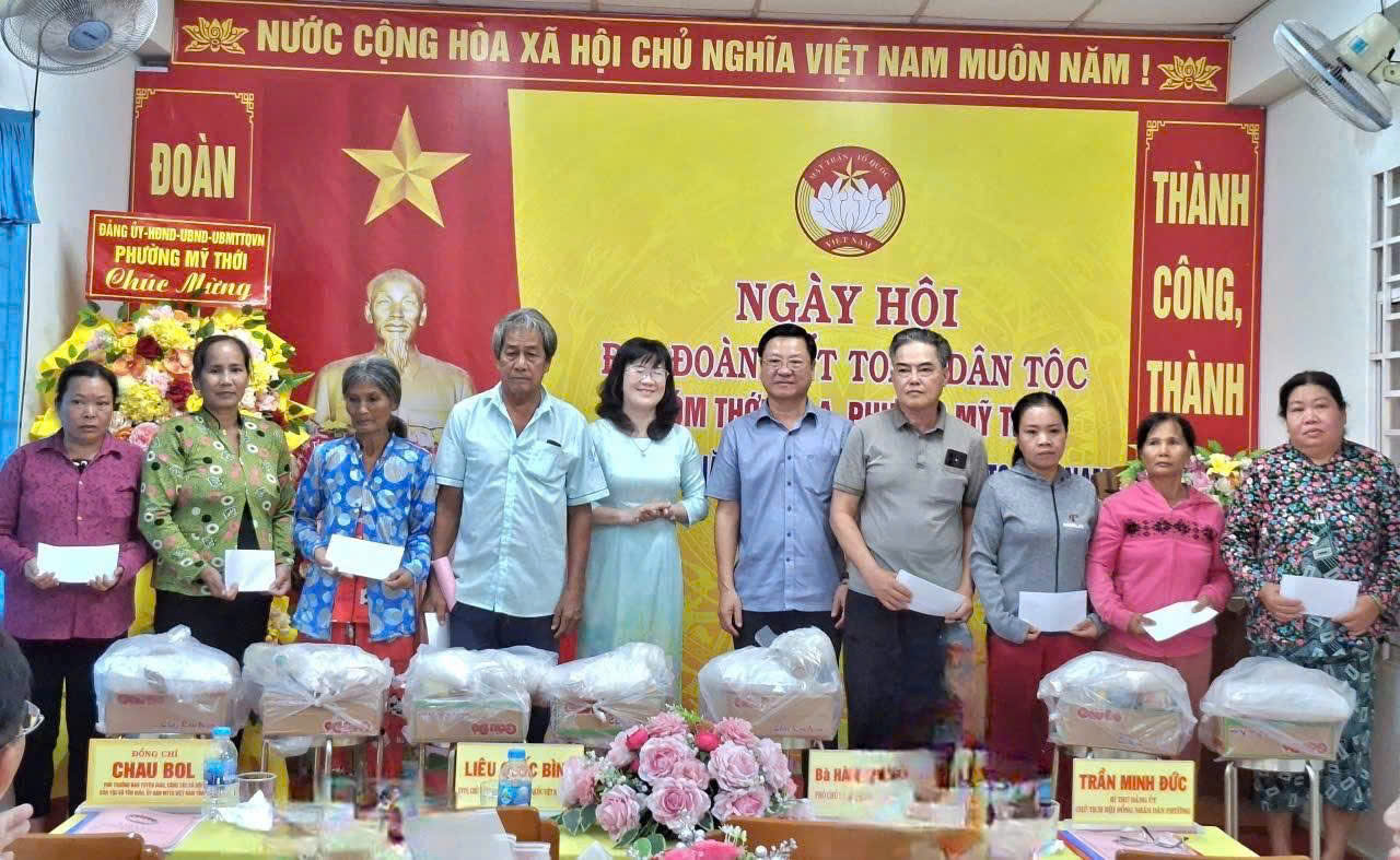 Chiều ngày 15/11, khu dân cư khóm Thới An A, phường Mỹ Thới, tỉnh An Giang long trọng tổ chức Ngày hội Đại đoàn kết toàn dân tộc nhân kỷ niệm 95 năm Ngày thành lập Mặt trận Dân tộc Thống nhất Việt Nam và Ngày truyền thống MTTQ Việt Nam (18/11/1930 – 18/11/2025). Bà Hà Minh Trang, Phó chủ tịch UBMTTQVN tỉnh An Giang; Ông Trần Minh Đức, Bí thư Đảng ủy, Chủ tịch HĐND phường Mỹ Thới; cùng lãnh đạo phường và đông đảo nhân dân trên địa bàn đến dự.