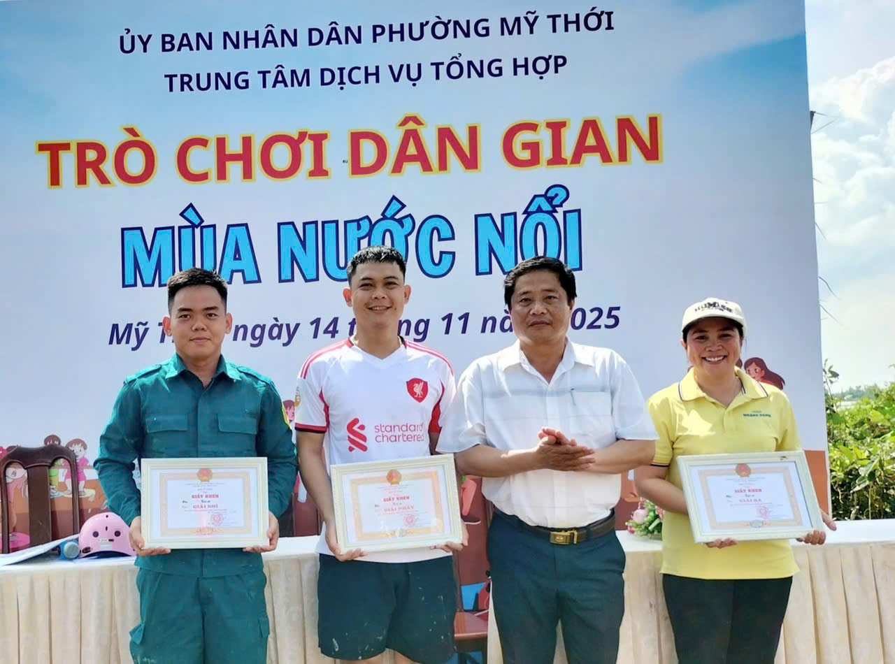 Sáng ngày 14/11/2025, tại cánh đồng nước nổi khóm Tây An, phường Mỹ Thới, UBND phường tổ chức thi đấu thể thao, trò chơi dân gian mùa nước nổi năm 2025. Chương trình diễn ra trong không khí vui tươi, hào hứng, thu hút sự tham gia của đông đảo cán bộ, chiến sĩ và người dân địa phương. Đây là hoạt động thiết thực nhằm tăng cường tinh thần đoàn kết, rèn luyện thể chất, đồng thời giữ gìn và phát huy các giá trị văn hóa dân gian đặc sắc.