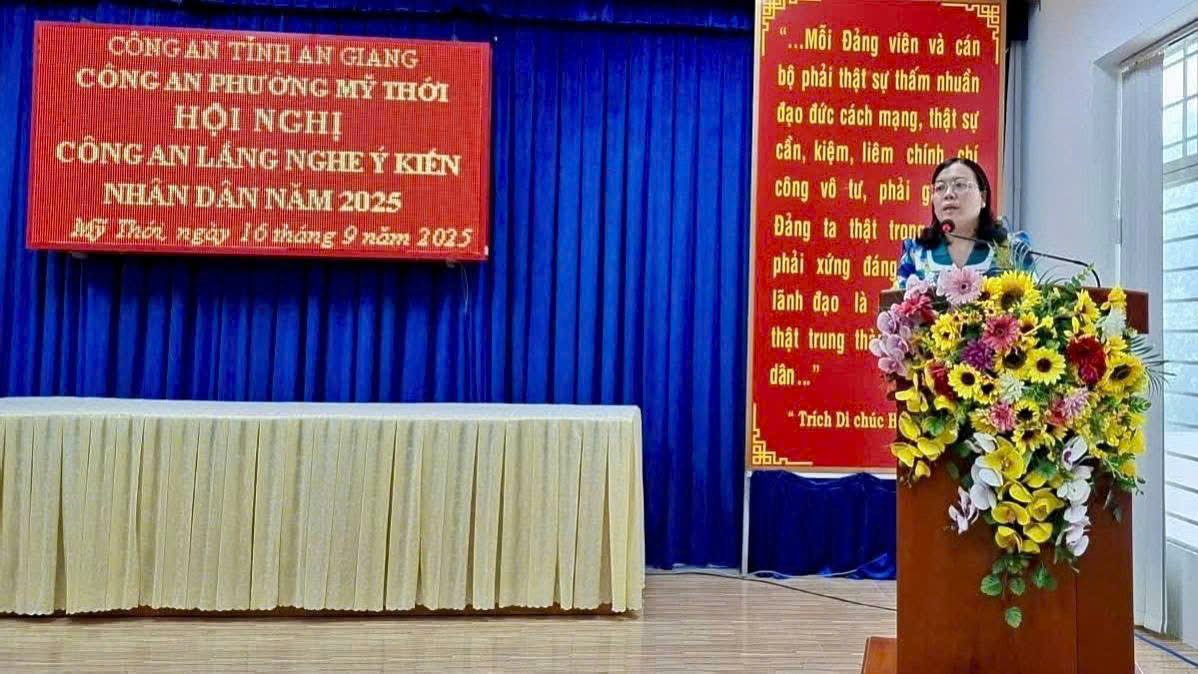 Chiều ngày 16/9, Công an phường Mỹ Thới tổ chức Hội nghị Công an lắng nghe ý kiến Nhân dân năm 2025. Đồng chí Trần Minh Đức, Bí thư Đảng ủy, Chủ tịch HĐND phường Mỹ Thới; đồng chí Vương Mai Trinh, Phó Bí thư Đảng ủy, Chủ tịch UBND phường đến dự.