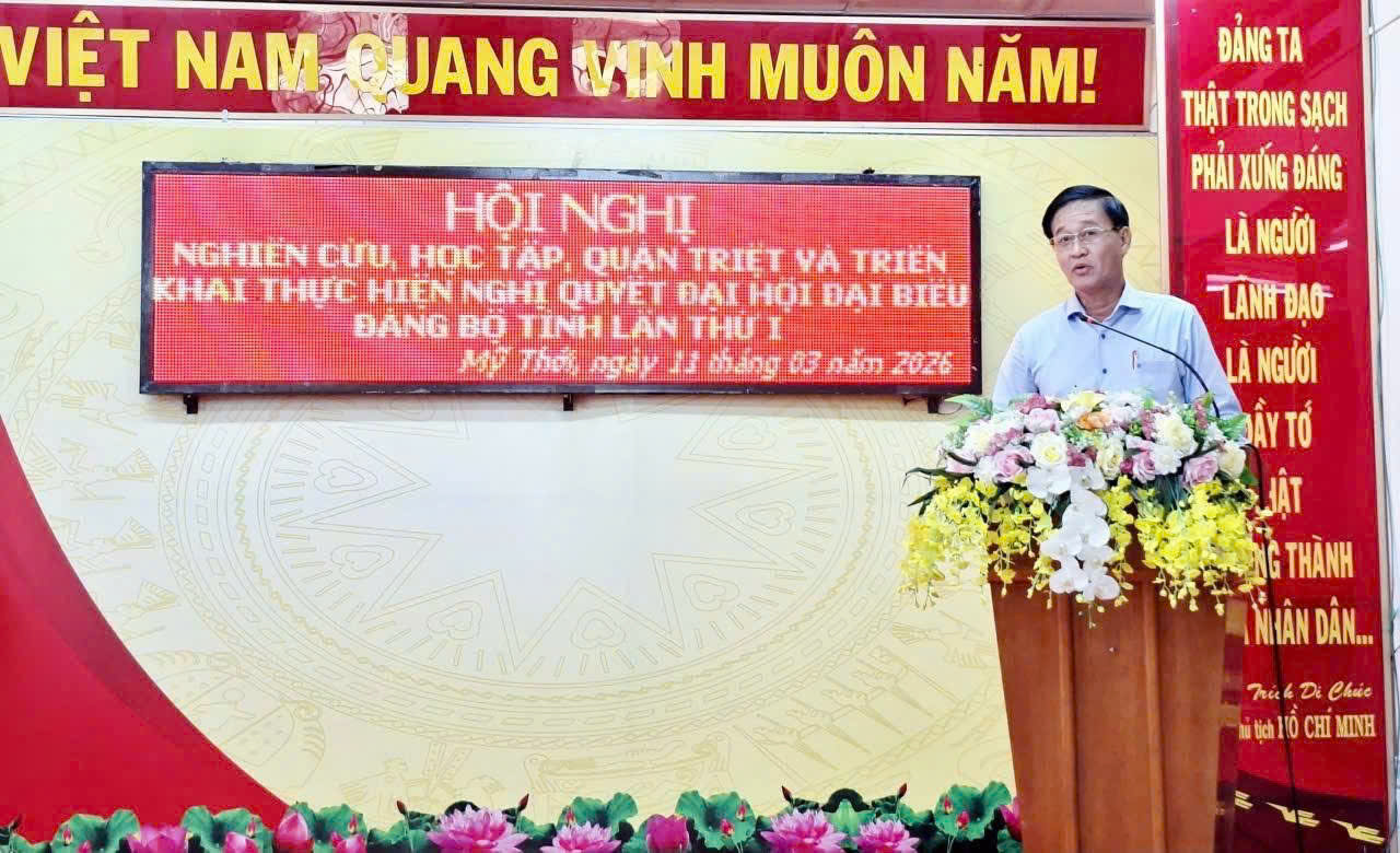 MỸ THỚI - HỘI NGHỊ NGHIÊN CỨU, HỌC TẬP, QUÁN TRIỆT VÀ TRIỂN KHAI THỰC HIỆN NGHỊ QUYẾT ĐẠI HỘI ĐẠI BIỂU ĐẢNG BỘ TỈNH LẦN THỨ I, NHIỆM KỲ 2025 - 2030