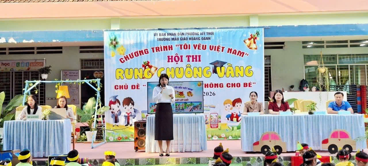 Nhằm tăng cường giáo dục kiến thức, kỹ năng tham gia giao thông an toàn cho trẻ mầm non ngay từ những năm đầu đời, ngày 16/01, Trường Mẫu giáo Hoàng Oanh, phường Mỹ Thới đã tổ chức Hội thi “Rung chuông vàng” với chủ đề “An toàn giao thông cho bé”, năm học 2025 – 2026.