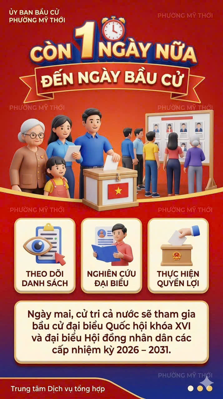 Ngày mai Chủ nhật (15/03/2026) cả nước sẽ diễn diễn ra “Ngày hội non sông – Bầu cử Quốc hội khóa XVI và bầu cử Đại biểu HĐND các cấp nhiệm kỳ 2026 - 2031. Đây là một sự kiện chính trị đặc biệt quan trọng của toàn Đảng, toàn quân, toàn dân thể hiện ý chí, nguyện vọng và quyền làm chủ của Nhân dân trong việc xây dựng Nhà nước pháp quyền xã hội chủ nghĩa, lựa chọn và thành lập các cơ quan quyền lực nhà nước ở trung ương và địa phương.