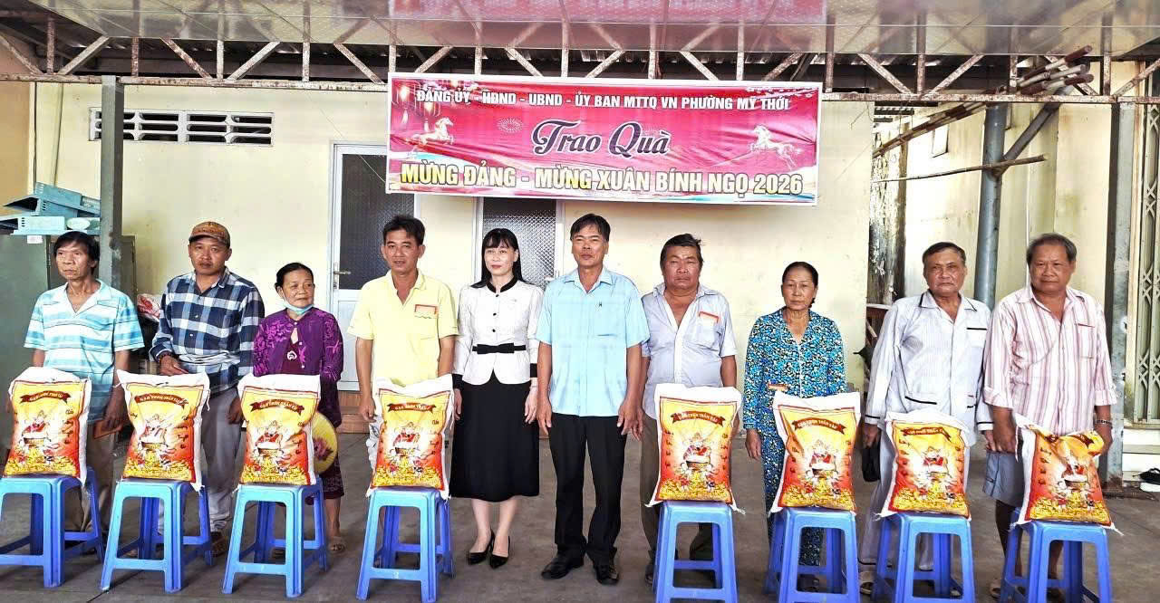 🌾Chiều ngày 27/01, Ủy ban Mặt trận Tổ quốc Việt Nam phường Mỹ Thới tổ chức trao tặng quà Tết cho các hộ cận nghèo, hộ có hoàn cảnh khó khăn trên địa bàn phường, nhân dịp Tết Nguyên đán Bính Ngọ 2026.