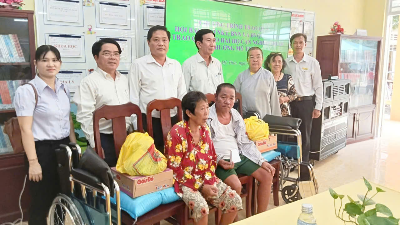 Theo đó, chiếc 02 chiếc xe lăn trao tặng cho bà Võ Thị Tơ, ngụ 11/7A và và ông Lâm Văn Phỉ ngụ 3/12, khóm Thạnh An, phường Mỹ Thới tổng giá trị 6.000.000 đồng. Hai xe lăn được trao tặng dùng làm làm phương tiện đi lại và mưu sinh cho cả 2 hộ. Bên cạnh, lãnh đạo địa phương và Nhóm thiện nguyện Như Ngọc và Ni sư Thích nữ Như Như còn trao tặng các quà gồm quà, gạo, nhu yếu phẩm, tiền mặt 02 hộ trị giá 2.000.000đ.