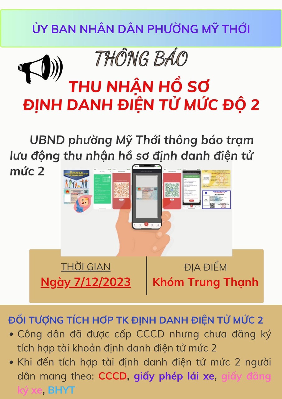 Thông báo thu nhận hồ sơ định danh điện tử mức độ 2