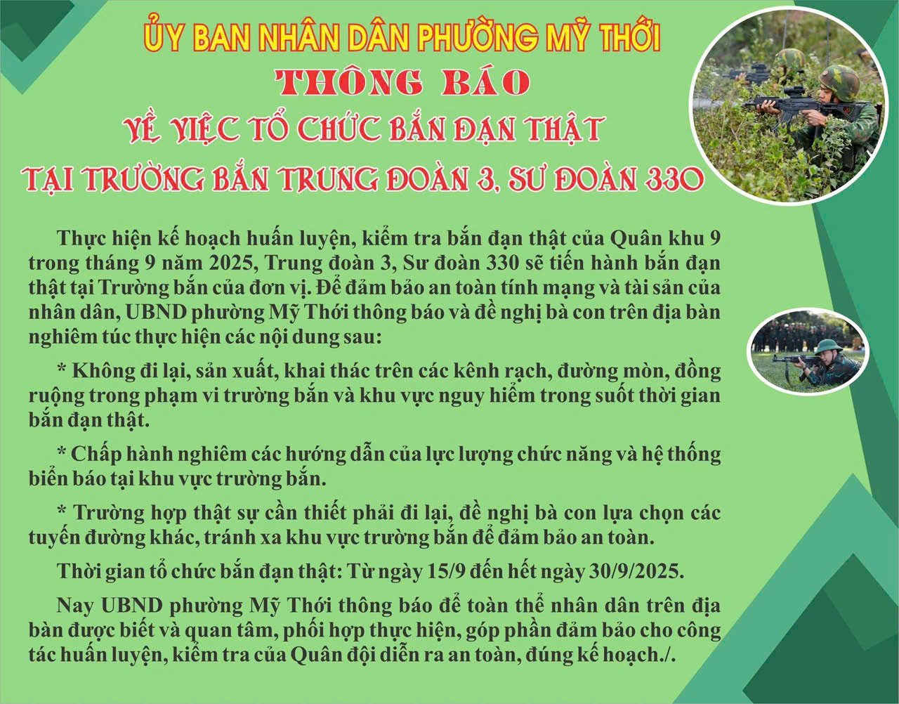 Thông báo về việc tổ chức bắn đạn thật tại trường bắn Trung Đoàn 3, Sư Đoàn 330